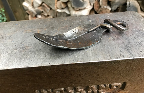 Hey look…another friggin J hook with a leaf…but this one is sitting on an anvil.