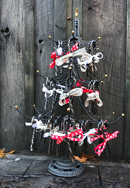 Only 120 more of these to go and we can decorate the Christmas tree! Hmmm….seems like a lot of work. Target has ornaments….yeah…maybe a trip to Target instead. Turns out, making the candy cane is the easy part…tying bows…that is a skill unto itself. 10 minutes to make the cane…20 minutes to tie a dang bow! I guess that is what happens after wearing cowboy boots for the past 40 years.