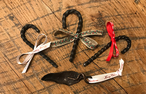 The final product. A forged candy cane Christmas ornament with a bit of bronze frosting.