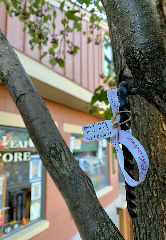 A candy cane Christmas ornament in the village of Nashville for someone to find.