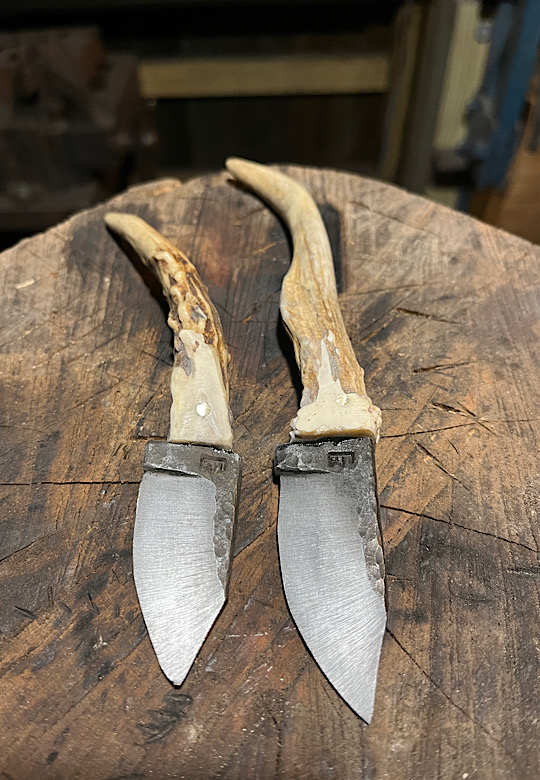It is the start of 2025 and I am still in knife making mode. These are tiny knives made with tiny antlers. Actually, the one on the left is a brow tine from a very large set of antlers, but it was the perfect size for this tiny little knife. The other was from a small yearling. Let no antler go to waste.