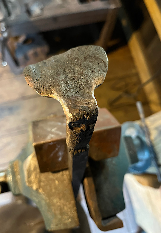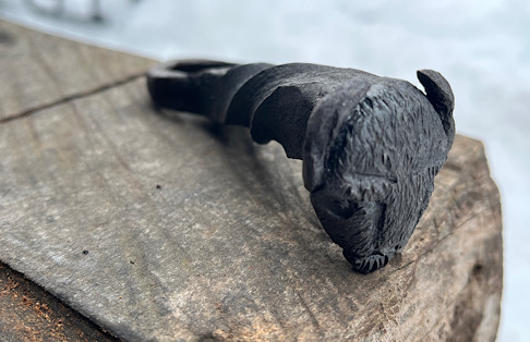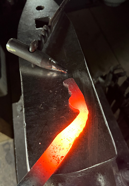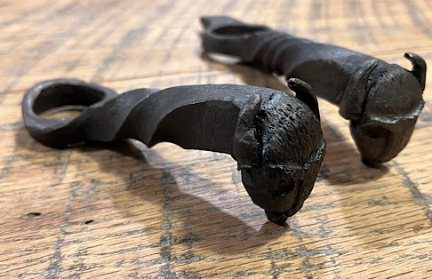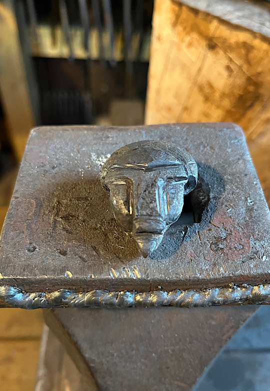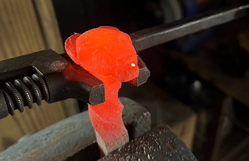 I finally got back to forging animal heads. This particular one is an adaptation of Darryl Nelson’s bison head, but on a railroad spike, which really helps with the preshape. The next step was to turn the head on a spike into something useful, like a bottle opener…one can never have too many bottle openers. Well…I guess you can because most people really only need one bottle opener, unless you are having a bottle opening party. Then, you might need a whole slew of bottle openers.