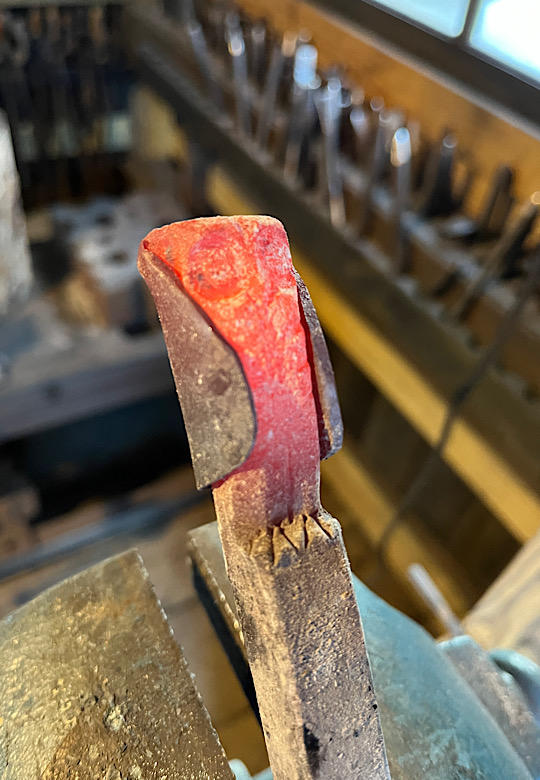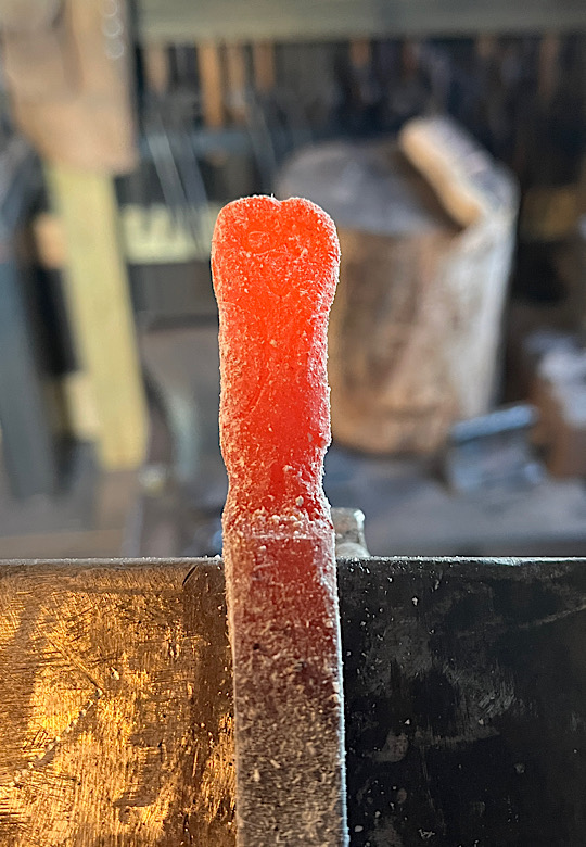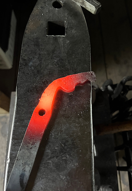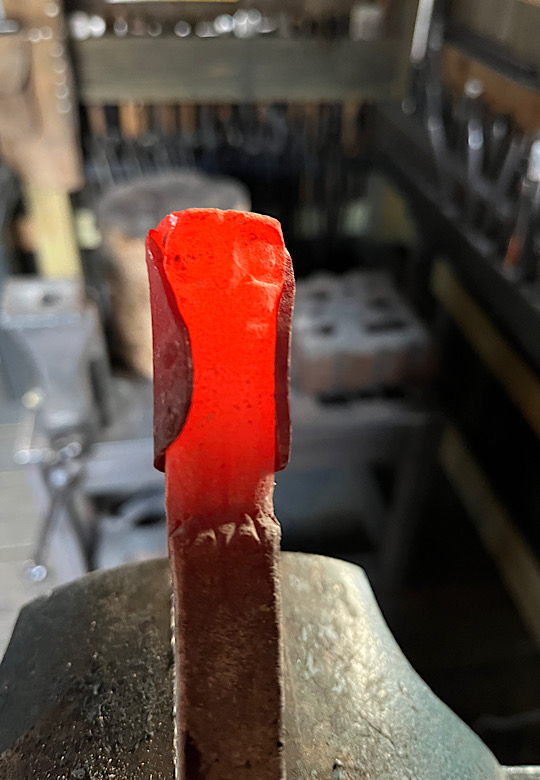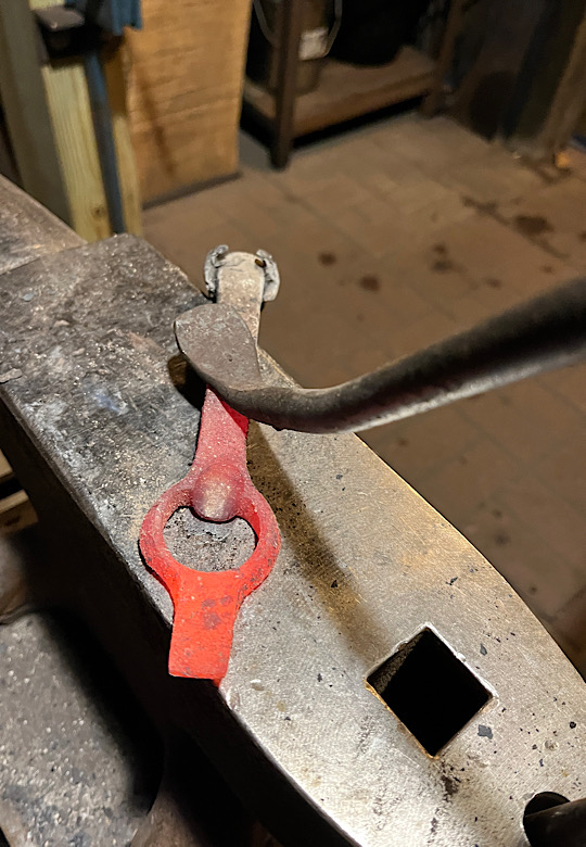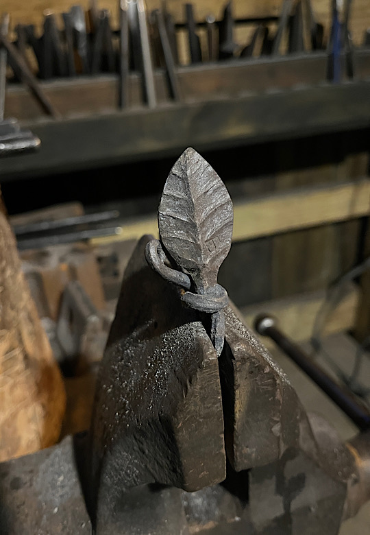 The next project is making a leaf keychain. It took me a bit to remember how to do these. It takes a bit of metal from an alloy of the purest gold, a few elves, some magic words, and the fires of Mount Doom…oh wait…that was the One Ring instructions. This just took a bit of 1/2” square bar, a little elbow grease, and the fires of my forge…not near as complicated as making a ring to rule the world.