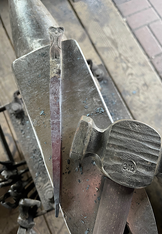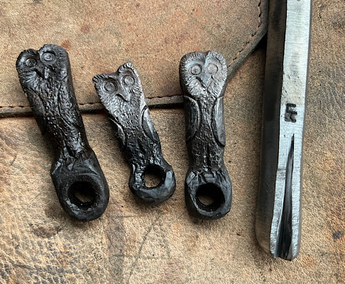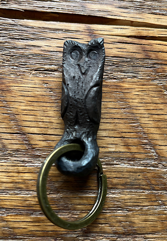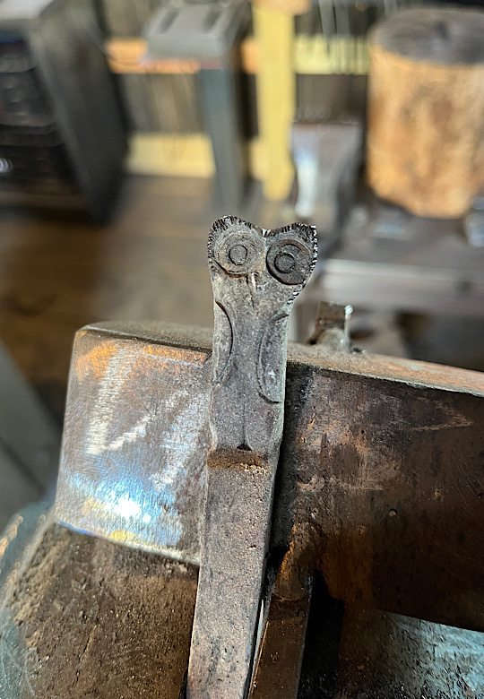 I am on to my next project….an owl on a stick. Why…because everyone needs an owl on a stick. Well, eventually I will turn it into something useful, but for right now, it is just an owl hanging out on top of a piece of 3/4” square stock. This style of owl was originally created by Forged in Holland at https://youtu.be/_2DHjeBYylA?si=SGZ2ABAYk7HGJ0oI if you are interested in seeing how these are made. I also made the same owl as a key fob from some 1/2 square stock.