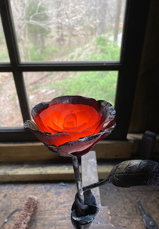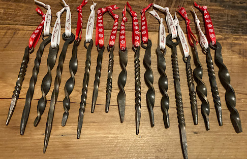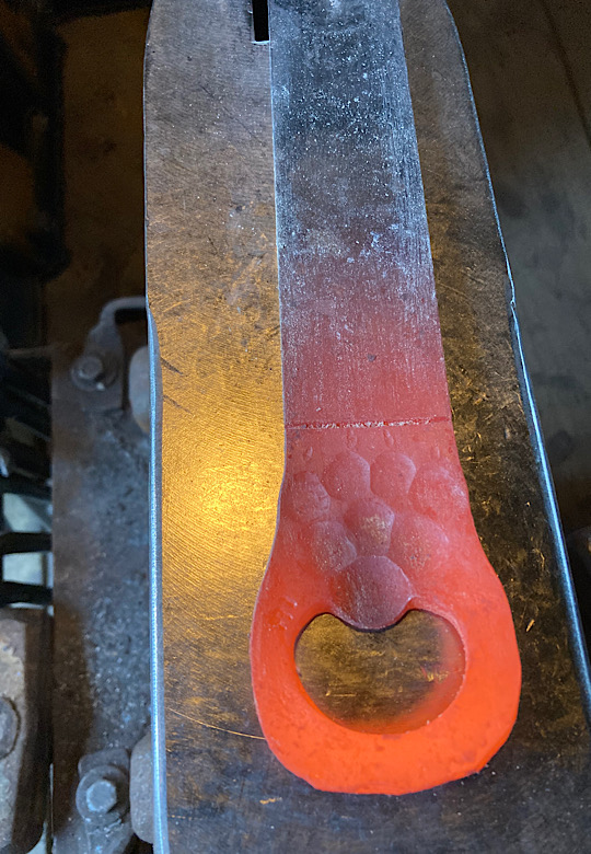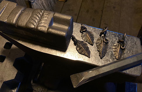 Here are a few leaves made using a new leaf stake from Blacksmith Supply and a new fuller that I made for this purpose.I started forging this new style of leaf for hooks, key fobs, and Christmas ornaments. Then winter storm Elliott hit. I thought, it is only -7 degrees, but I really wanted to work in the forge today. Well, I have done dumber things…but usually not that cold….brrrrrrrrr. Won’t be doing that again…at least until I forget just how cold that was.To make a deer print I needed to make a couple of custom punches first. These are made from mild steel until I am happy with the shape. The next step will be to make a permanent set from tool steel.Here looks like a good spot to hide an ornament. Well…not really hide per say.It is that time of year when we start hiding candy canes around the village of Nashville, Indiana. Hopefully, it is also the time of year when people start finding them!A few more random hook experiments for the wall of misfit hooks.Another random leaf…serving no purpose…just hanging out being a leaf.A steel or forge rose made from a kit from Whitlox Forge. I added my signature leaf to the project, but it was not really my thing…unless I can add a hook to it. Then it could go on the wall of misfit hooks. But look…it is glowing red…now that was cool…well, really hot…and I won’t tell you how I figured that one out.A wild turkey track bottle opener for retirement beers to go along with the turkey hatchet. The hatchet could be used as a bottle opener, but….after a few beers, that can become dangerous.The finished project…the turkey hatchet. Ready just in time for Thanksgiving! Well, more like spring turkey season. But it will also work on most any woody object. Run Woody! Run!I am trying out adding a few wildlife inspired embellishments. This hatchet will be a gift for our wild turkey biologist so I am adding a few turkey tracks. Hmmm. I hope he does not visit this page before I can give it to him. Wait….what am I thinking. No one visits these pages 😁.Making another hatchet head.A simple drive hook made from a railroad spike. No other fasteners are required. Just take a hammer and pound it into the wall. Railroad spike hook to hold .my extensive collection of…well, anything that you can hang up.A couple of more hooks for the wall of misfit hooks.Making a few items to give away at our annual DFW conference. There seems to be a need for a lot of bottle openers. I am not sure why that would be the case….Completed knife using reclaimed barn wood as the handle material. After a thorough chopping test, I can definitively say, ”It will KALE!” Now that the blade has been hardened and quenched, I am on to tempering. I hope my wife does not need the oven for the next 4 hours. I guess I could throw a chocolate cake in there with it, just to use resources wisely. Yeah…that is an excellent idea.Heating up the knife during the hardening process. Looking to achieve a bright cherry color for this 1095 steel. Mmmmm…cherries. Great. Now I am hungry again.A parliament of owl bottle openers.An owl bottle opener. The are very handy when Hogwarts students need to crack open a bottle of their favorite celebratory butter beer after passing their Ordinary Wizarding Levels. Of course they could just use magic. Maybe it would be useful for those who did not pass…but they would not feel like celebrating. But they would feel like getting drunk so this works out perfectly!Heating up a section of 1/4” flat stock in the old charcoal forge to make an owl shaped bottle opener.A couple of fishy bottle openers for the new year.